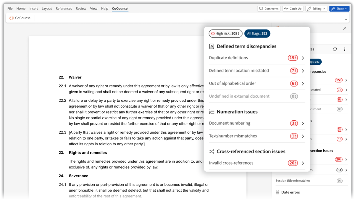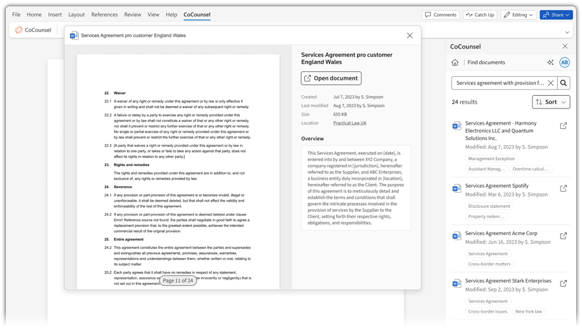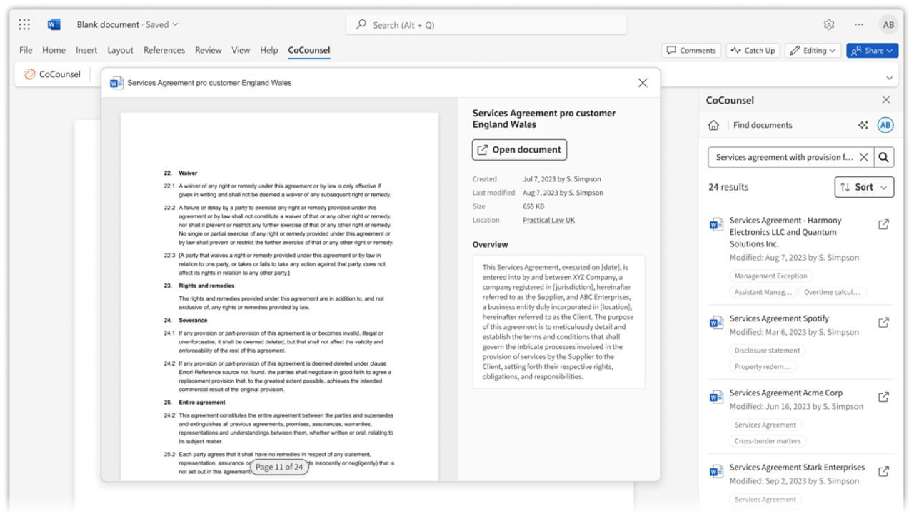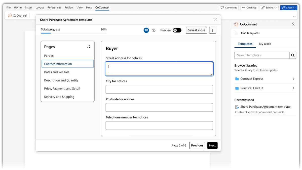 Create, review, and finalise legal documents with generative AI-powered skills from CoCounsel Drafting — all without leaving Microsoft Word