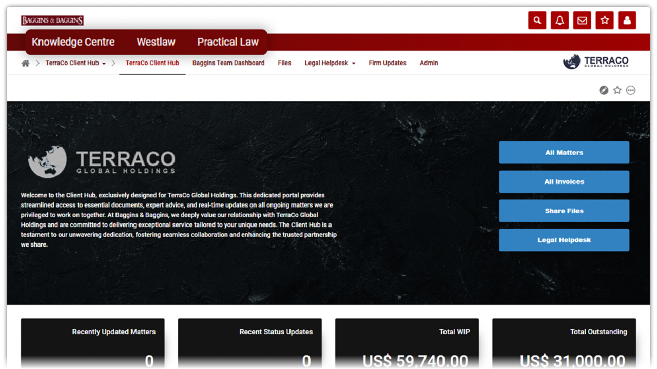 - Collaborative knowledge centre: Create a centralised hub for the knowledge management team to share legal insights and resources, enhancing collaboration across the firm.