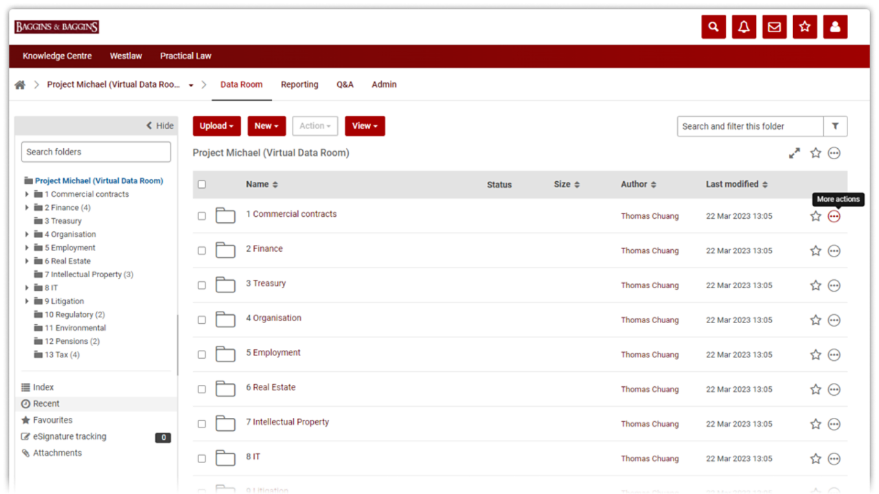 - Centralised document storage: Store all legal mergers and acquisitions deal documents in a secure location for easy organisation and retrieval.