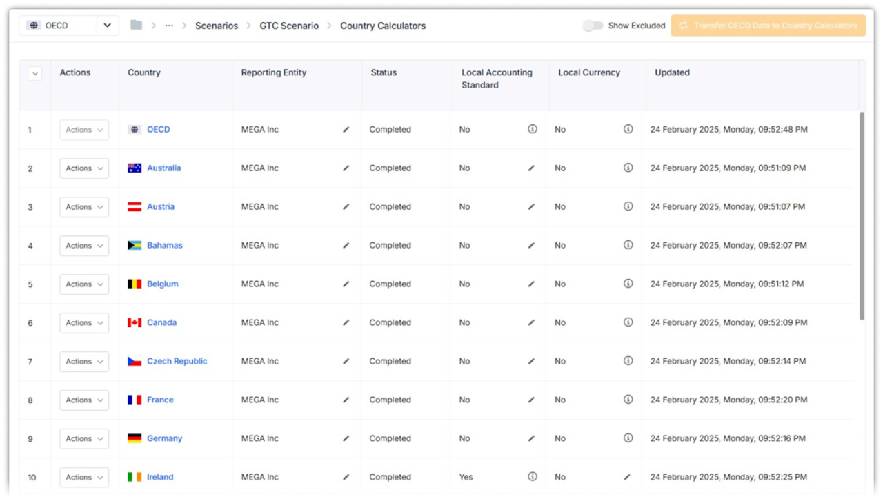 - Determine effective tax rates (ETR) and top-up tax liability for each country that you operate in using in-built tax rates for 190+ countries for STTR calculations, and pre-defined country-specific calculators for IIR, UPTR, and QDMTT. Pre-defined rules and logics ensure that country-specific calculators run concurrently and in the required sequence, based on GMT related local laws.